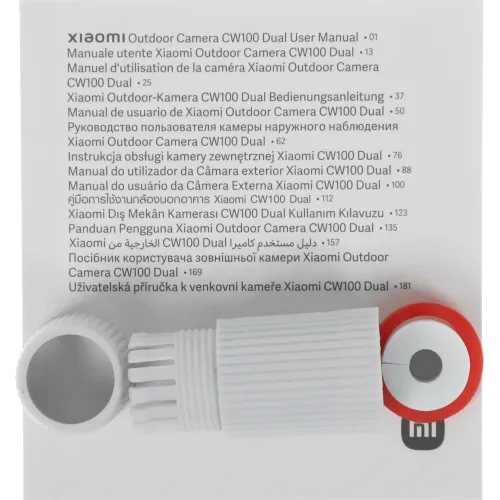 | Комплектация | Уличная камера Xiaomi CW100 Dual; адаптер питания; водонепроницаемая клейкая лента для шнура питания; наклейка с монтажным шаблоном; набор принадлежностей для винтов; водонепроницаемые аксессуары для сетевых портов; Наклейка для привлечения внимания; Руководство пользователя |