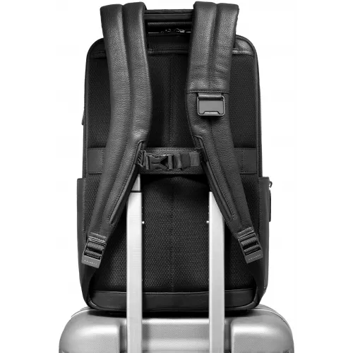 | Описание | Персонализируемый дорожный рюкзак из кожи для ноутбука и iPad® с замком для защиты от отпечатков пальцев, грудинным ремнем, RFID и амортизирующей защитой |