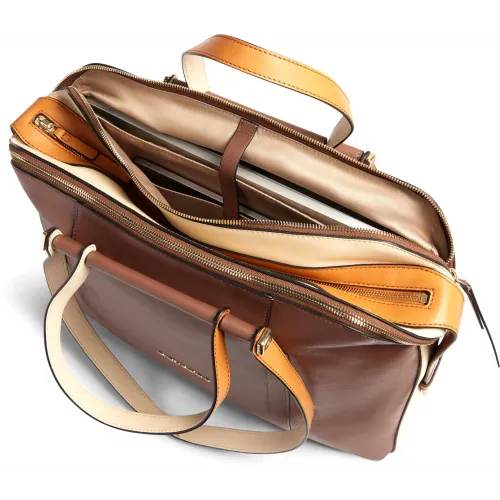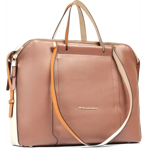 Деловая сумка женская Piquadro Circle BD4574W92/MBE с отделением для ноутбука 14" коричневая/бежевая натур.кожа
