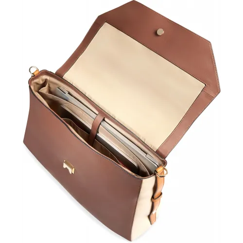 Деловая сумка женская Piquadro Circle BD6778W92/MBE с отделением для ноутбука 14" коричневая/бежевая натур.кожа