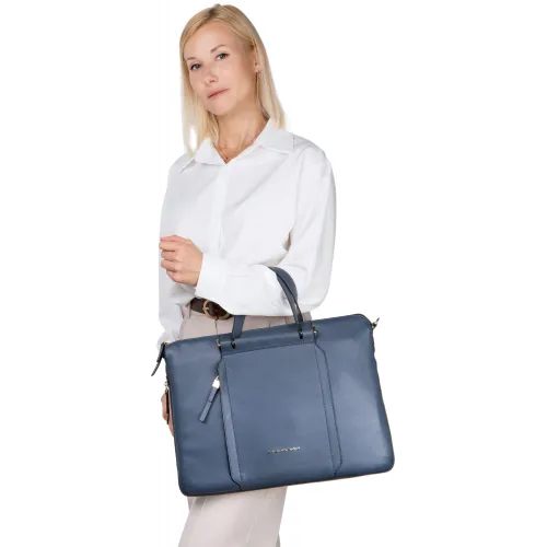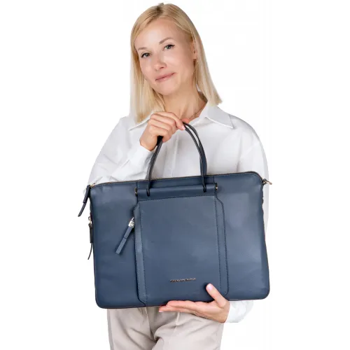 Деловая сумка женская Piquadro Circle CA4021W92/BLU4 с отделением для ноутбука 15.6" синяя натур.кожа