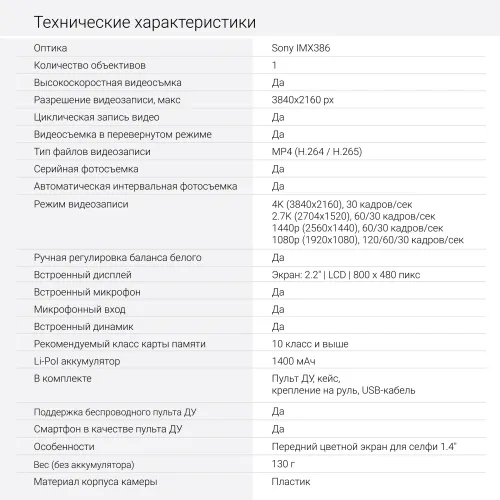 | Разрешение видеозаписи, макс (гориз/верт) | 3840x2160pix |